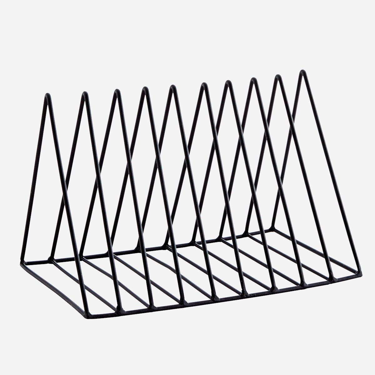 This contemporary Black iron plate rack is a great way to add a bit of style and organisation to your kitchen storage. A stylish way to store your plates, chopping or serving boards, toast, napkins and many, many more! The rack has 9 slots.