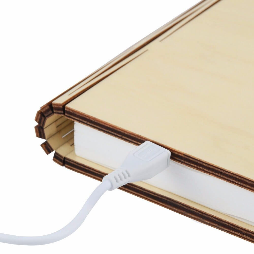 Inside the laser-cut wood cover hides a series of light pages containing high-performing white LEDs, creating an unusual and stylish addition to your home.