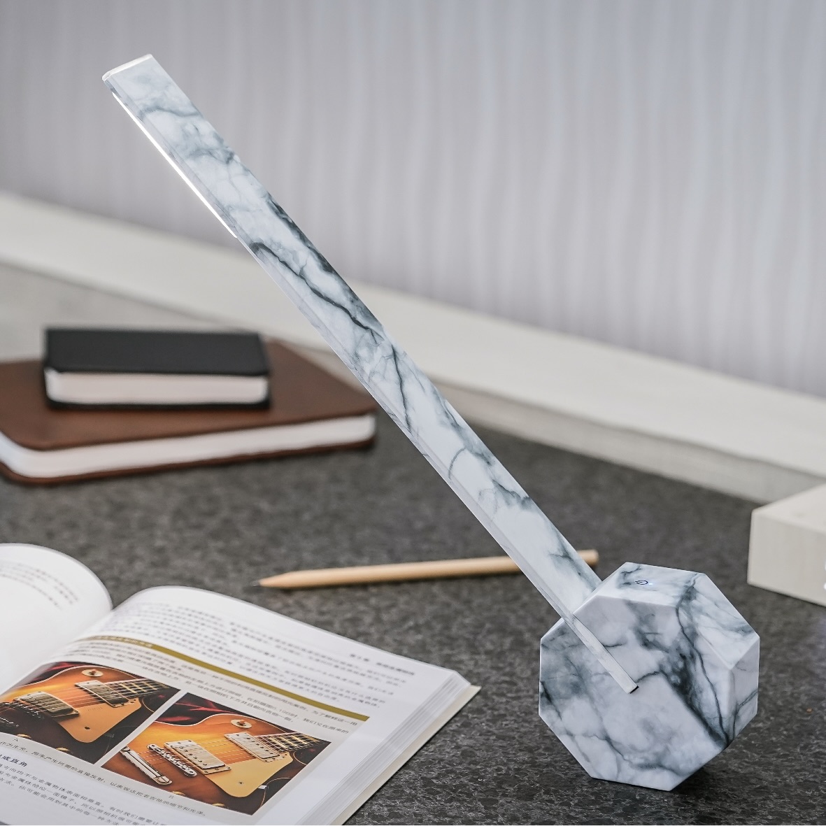 Octagon One Desk Lamp White Marble