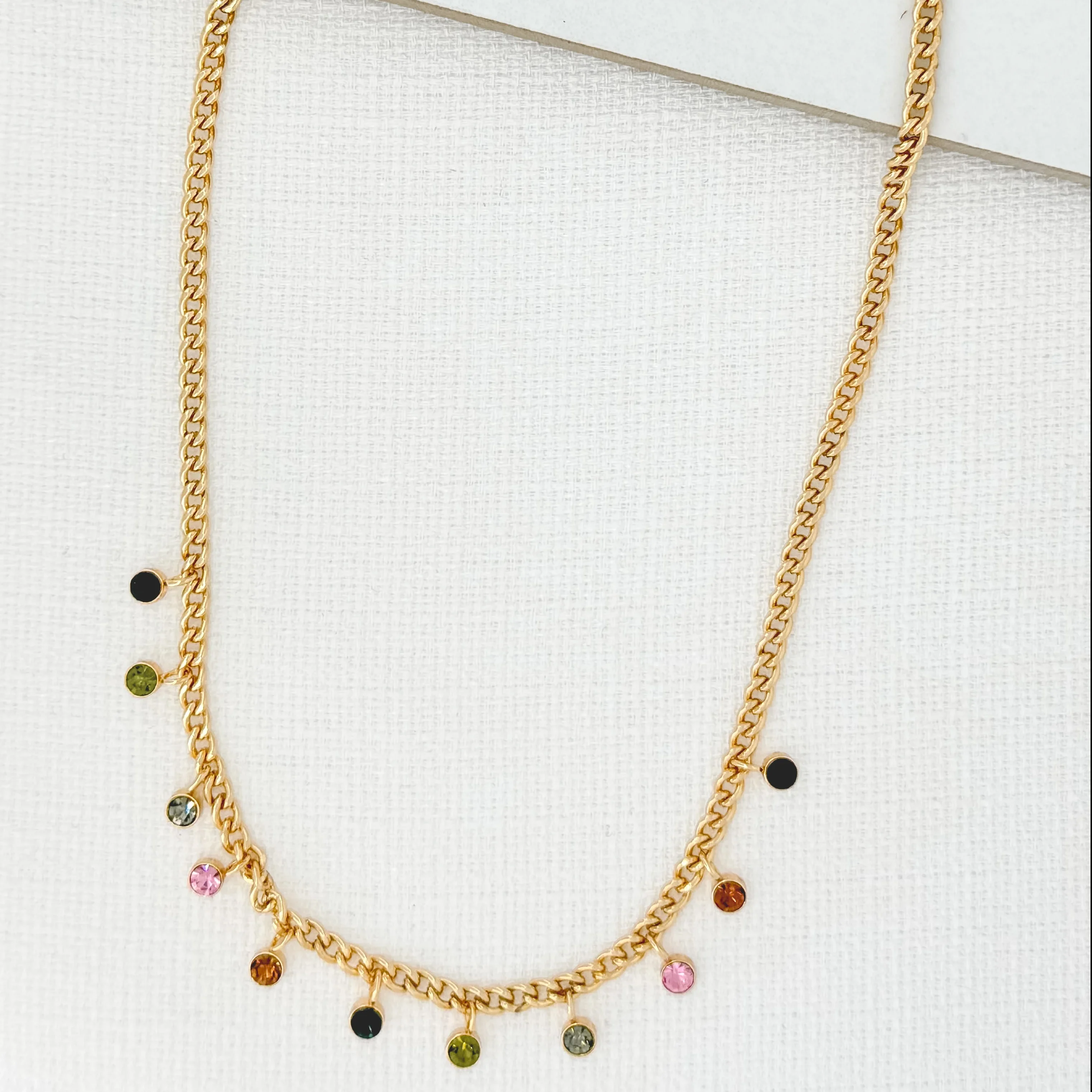 Short Gold Necklace with Multi Colour Crystal Droppers